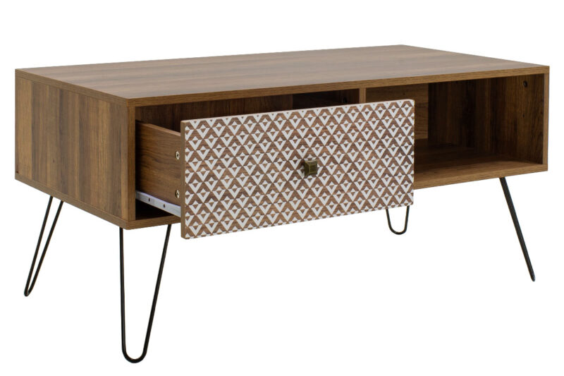• Бохо масичка за кафе орех с метални крака 100x50x46 см