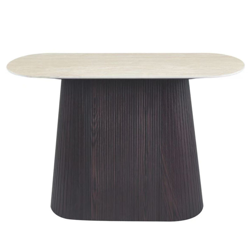 Керамичен плот в цвят ТРАВЕРТИН СТОУН и основа от MDF в ТЪМНО КАФЯВ цвят с красиви гънки