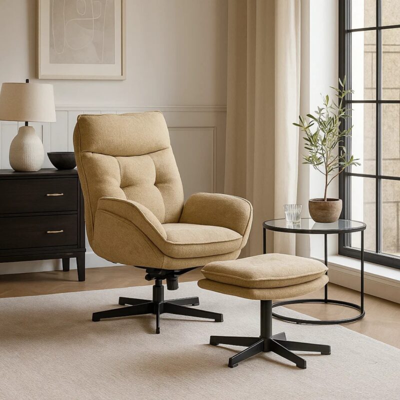 Изпитайте върховно удобство с креслото ANDREA и неговата табуретка, които съчетават стил и комфорт. Люлеещата функция и високата облегалка осигуряват релаксация, докато меката дамаска предлага луксозно усещане. Със стабилна метална основа, този комплект е идеален за всеки дом. Открийте повече за размерите и характеристиките в раздела “Допълнителна информация”.