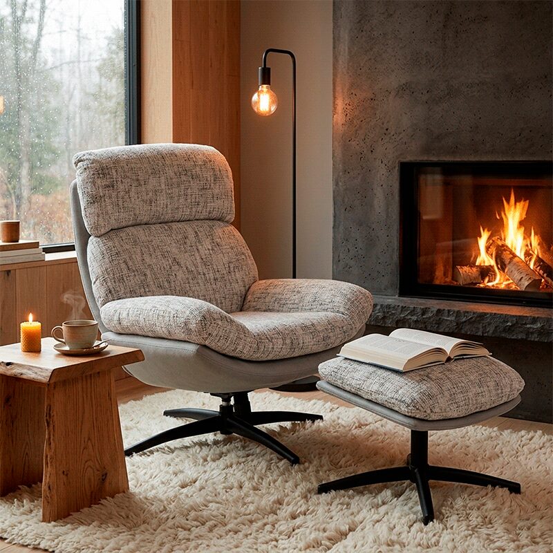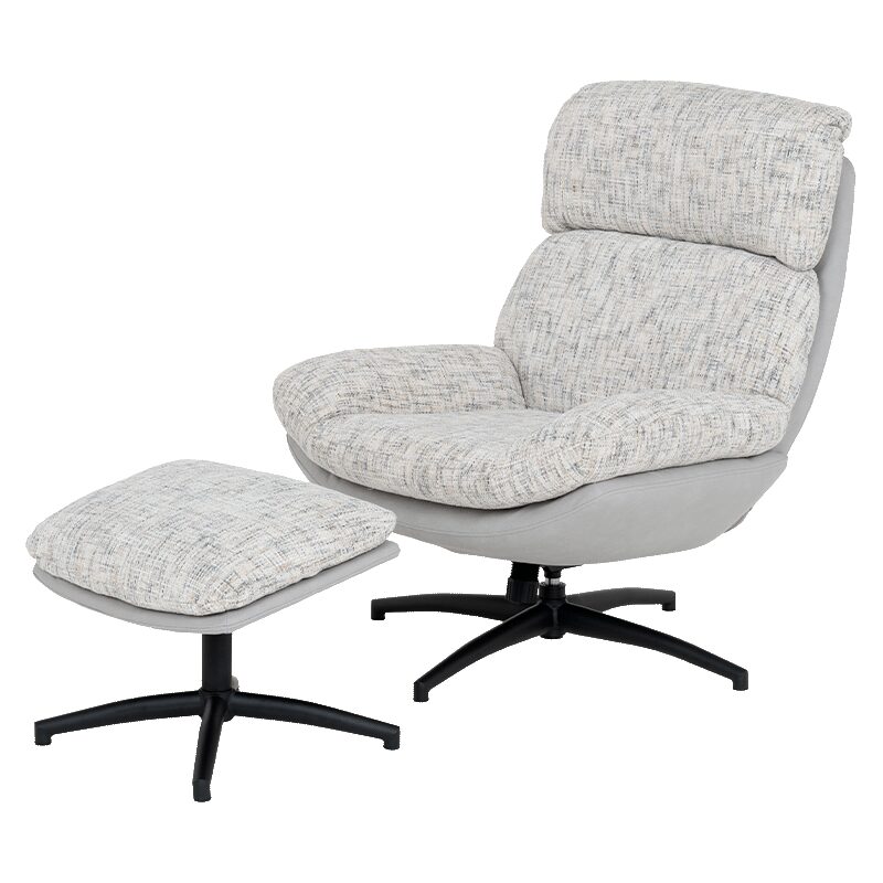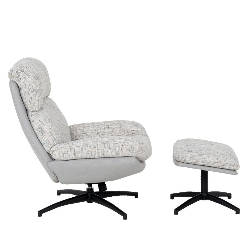 Креслото с табуретка ELVAS е идеалният избор за вашата релаксация, съчетавайки модерен дизайн и висока функционалност. Тапицирано с качествена дамаска и подкрепено от стабилна метална основа с прахово боядисани крака, това кресло предлага въртене на 360 градуса и люлеещ механизъм. Комплектът включва стилна табуретка за още по-пълноценна почивка. Максимално натоварване: 130 кг.