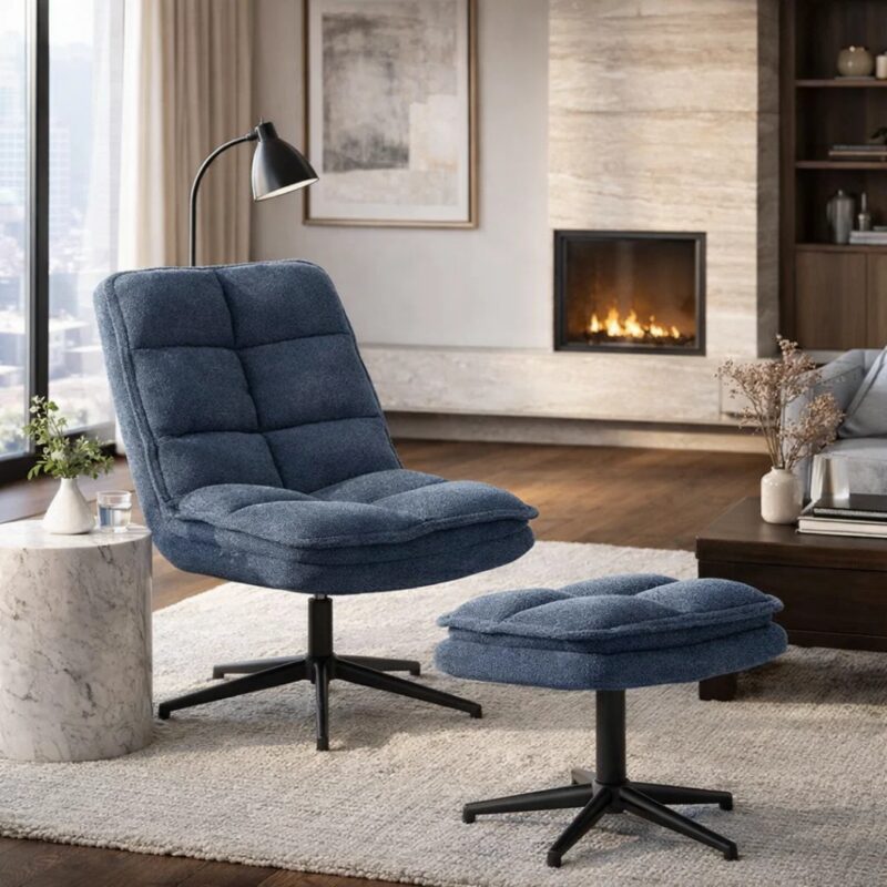 Насладете се на несравним комфорт и стил с кресло и табуретка JANET – перфектният избор за съвременния дом. С елегантен дизайн и приятна на допир дамаска, този комплект предлага въртяща се функция на 360° за пълно удобство. Стабилните метални крака гарантират дълготрайност и устойчивост. Открийте повече за размерите и характеристиките в раздел “Допълнителна информация”.