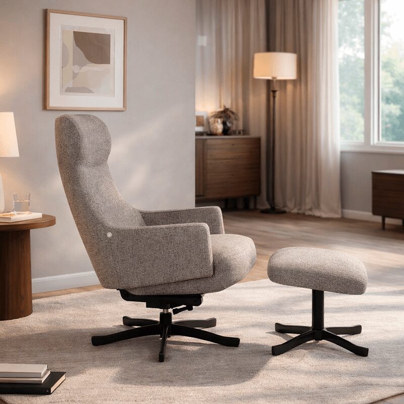 Кресло Lamego предлага върховен комфорт с ергономичен дизайн и функционални механизми, идеални за вашия дом или офис. Тапицирано с висококачествена текстилна дамаска, креслото разполага със стабилна метална основа и предлага въртене и регулиране на облегалката. Включва и стилна табуретка за допълнително удобство. Подходящо за натоварване до 130 кг, това кресло е перфектният избор за всеки интериор.