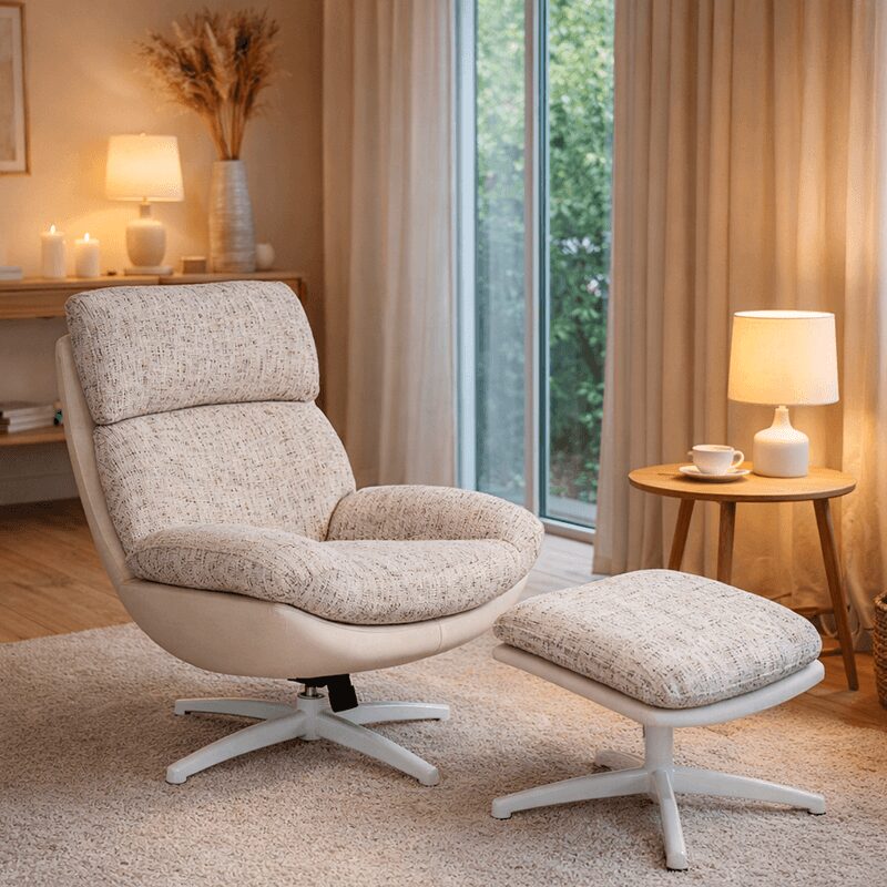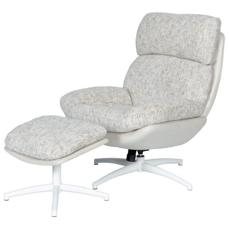 Креслото с табуретка VALONGO предлага ненадминат комфорт и стилен дизайн, който ще преобрази всяко пространство. С меката си тапицерия от висококачествена дамаска и стабилна метална основа с прахово боядисани крака, този комплект е идеален за релаксация. Функциите за 360-градусово въртене и люлеене осигуряват пълноценна почивка, докато табуретката допълва удобството. Максимално натоварване до 130 кг.