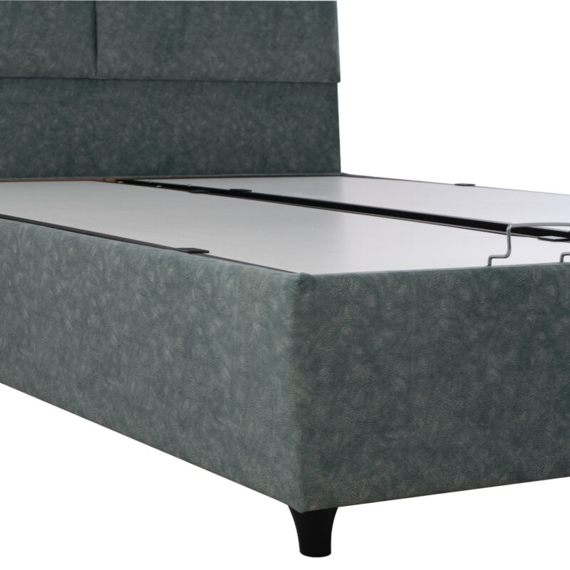 Леглото е облечено в висококачествена материя тип NUBUCK