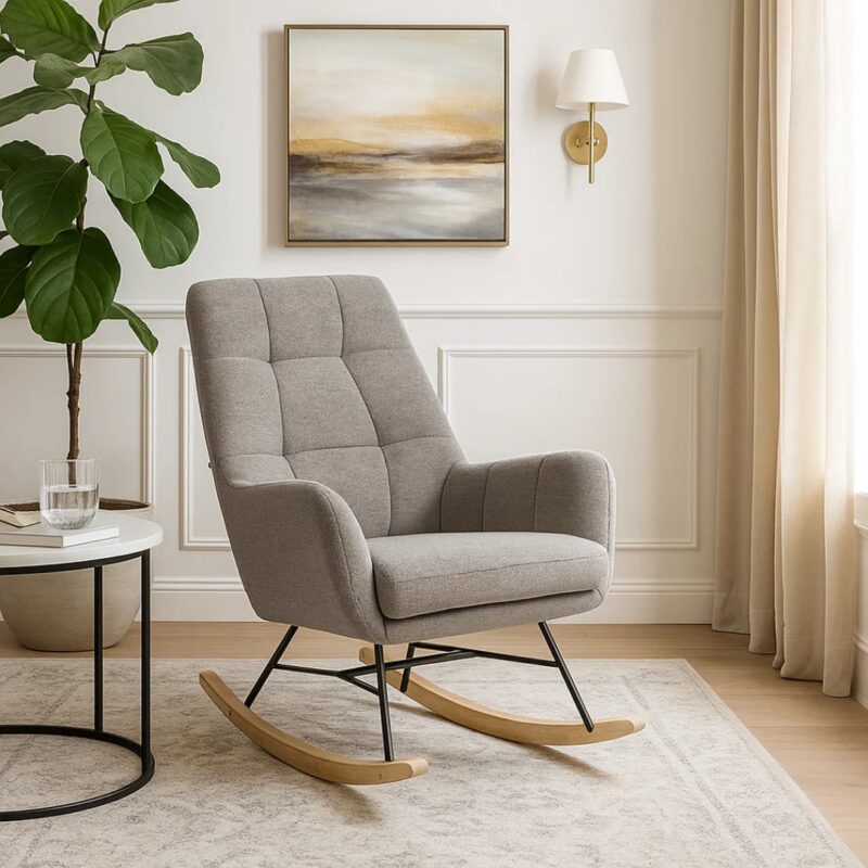 Подарете си пълен релакс с люлеещото кресло BIANCA, което съчетава комфорт и стил в едно. С висок гръб и удобна седалка, тапицирани с качествена дамаска, това кресло осигурява приятно усещане при допир. Металната основа с праховобоядисано покритие и дървените елементи добавят устойчивост и естетика. Идеално за всекидневна, спалня или кът за четене.