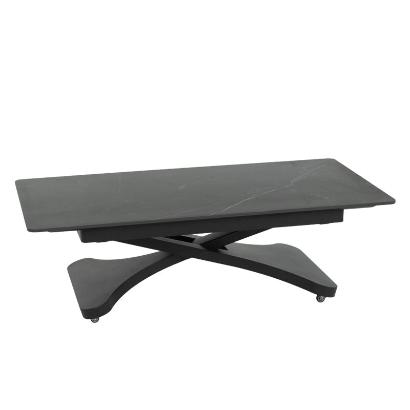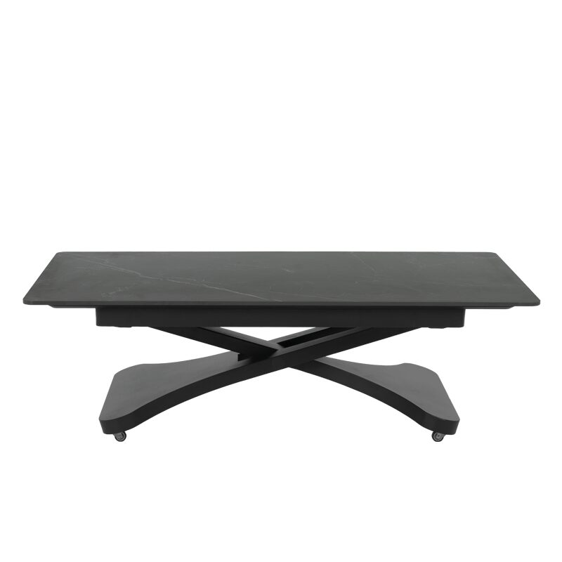 Масата с повдигащ механизъм ONOTO е перфектното решение за вашия дом, съчетавайки стил и функционалност. С лекота трансформирайте от ниска холна маса в удобна трапезна маса. Изработена от висококачествена керамика и праховобоядисан метал, тя предлага устойчивост и елегантност. Черният цвят и модерният дизайн я правят идеална за всеки интериор. Вградените колелца осигуряват лесно преместване.