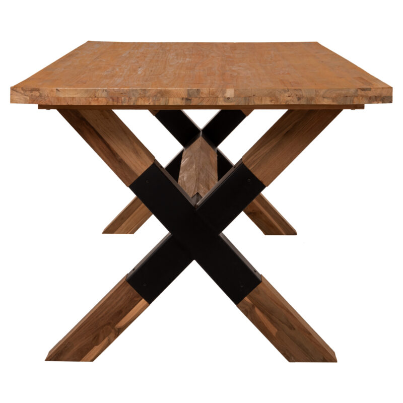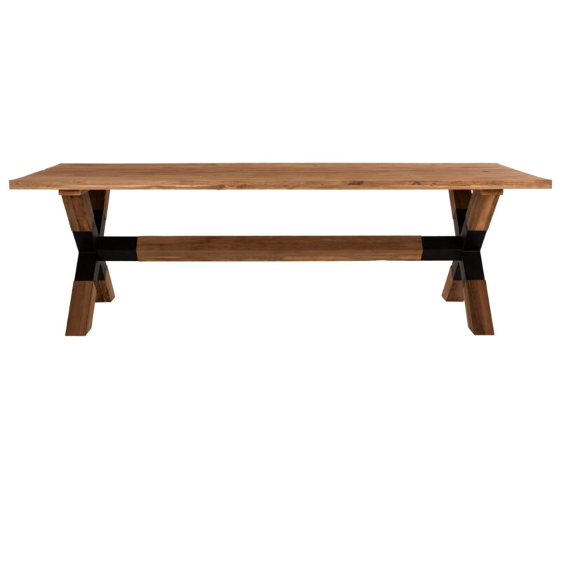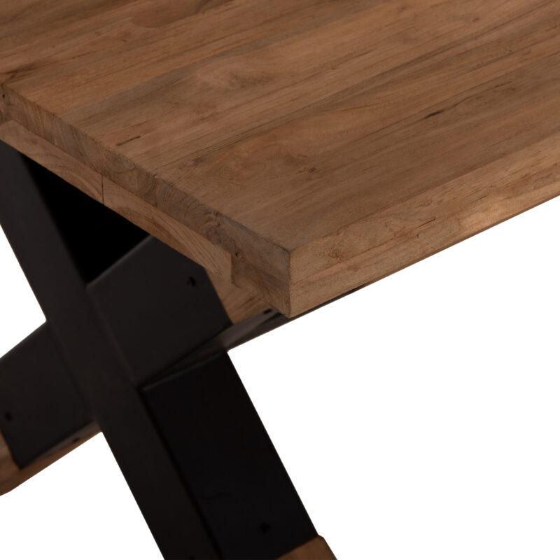Правоъгълна форма с кръстосани крака от черен метал и дърво