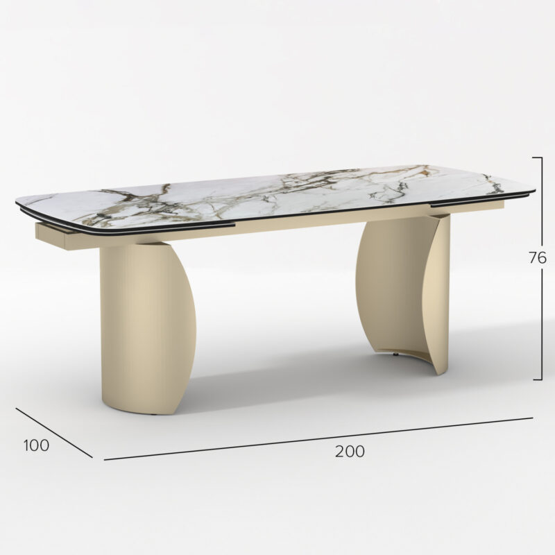 Керамичен плот с вид на бял мрамор, метална рамка и крака в цвят ШАМПАНСКО