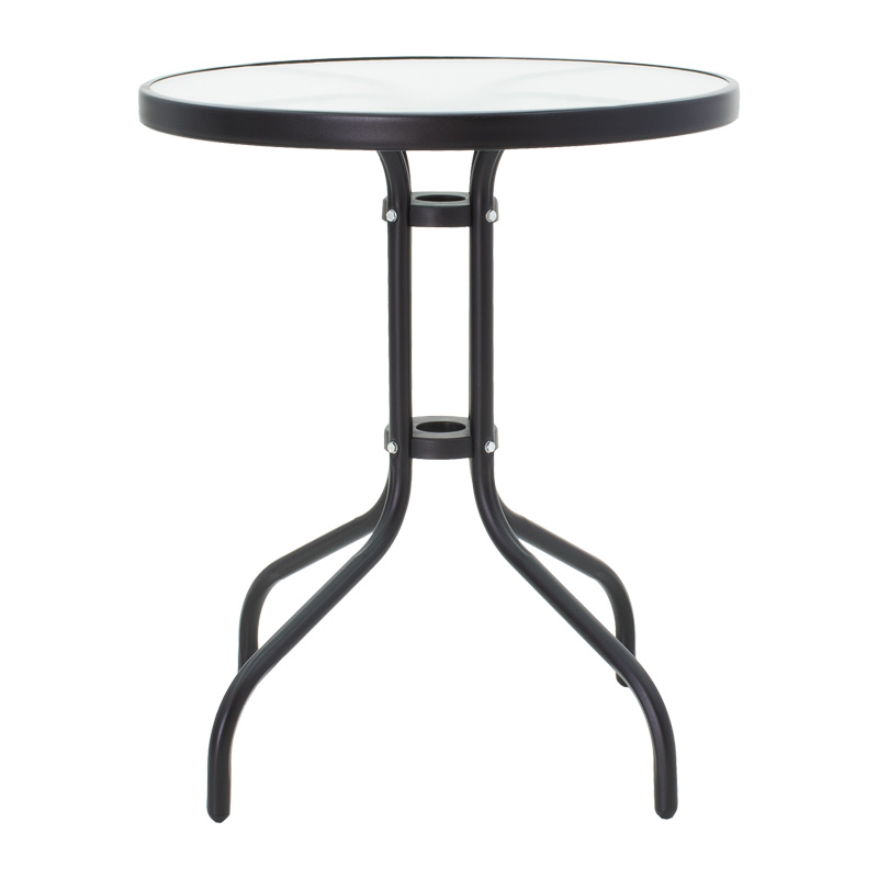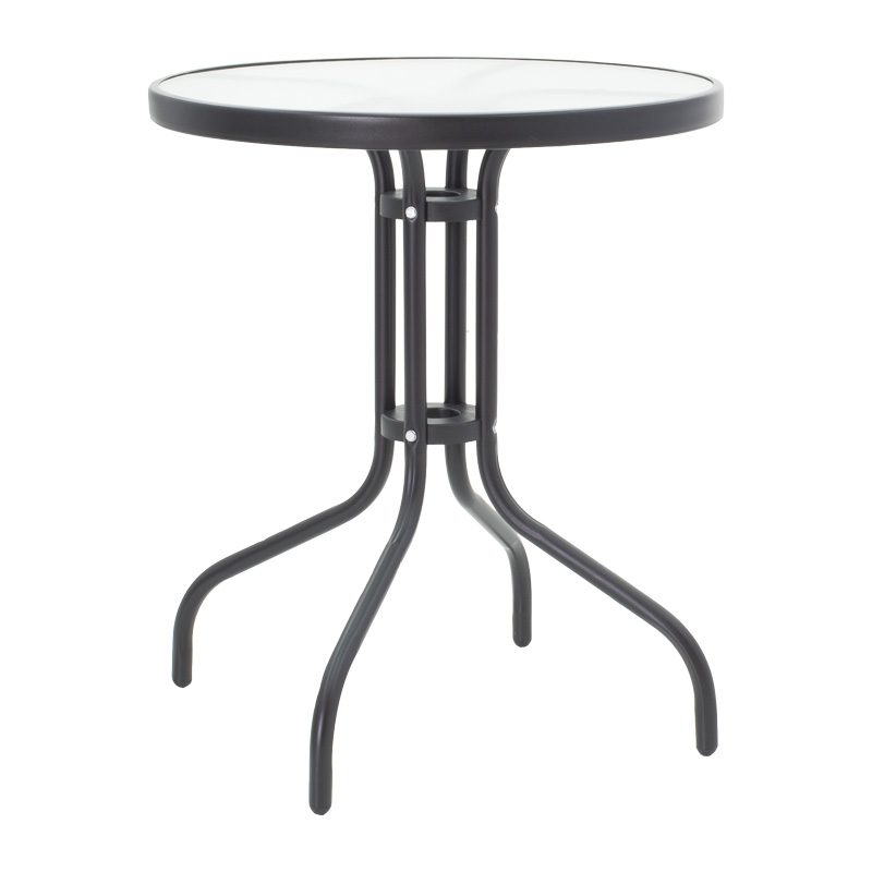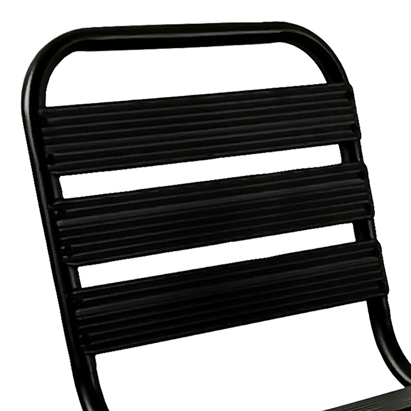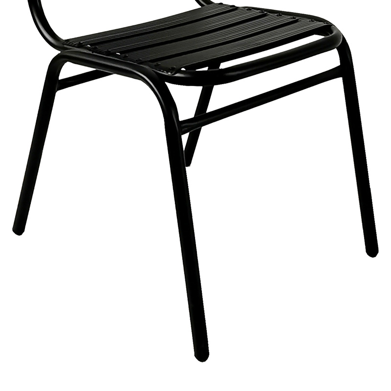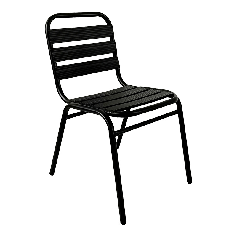 Метална рамка, плот от закалено стъкло, алуминиеви ламели на седалката и облегалката