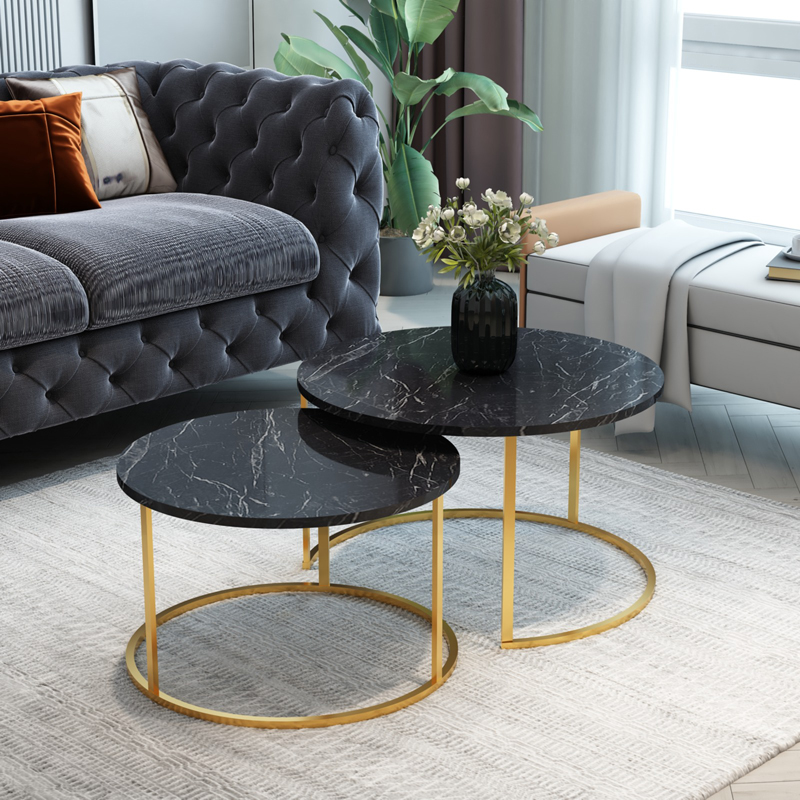 Комплект масички за кафе Solme – Черен мрамор и злато