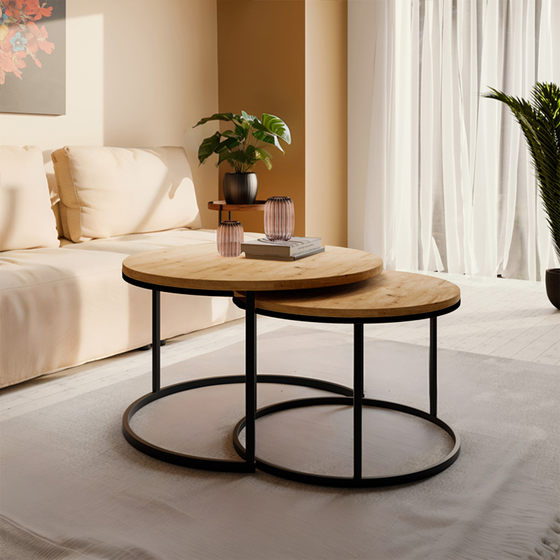 Комплект масички за кафе Solme – натурална меламин-черен метал