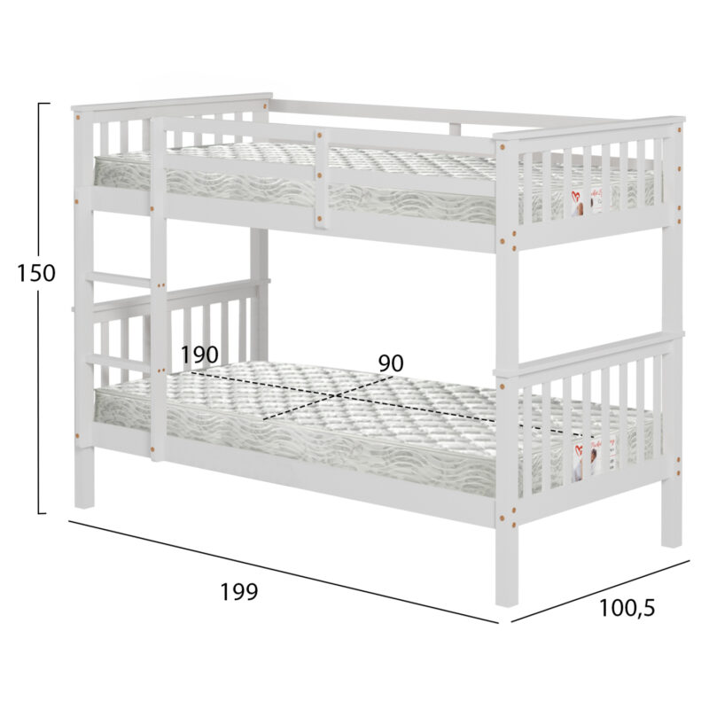 Детско двуетажно легло LANTAI – БЯЛО