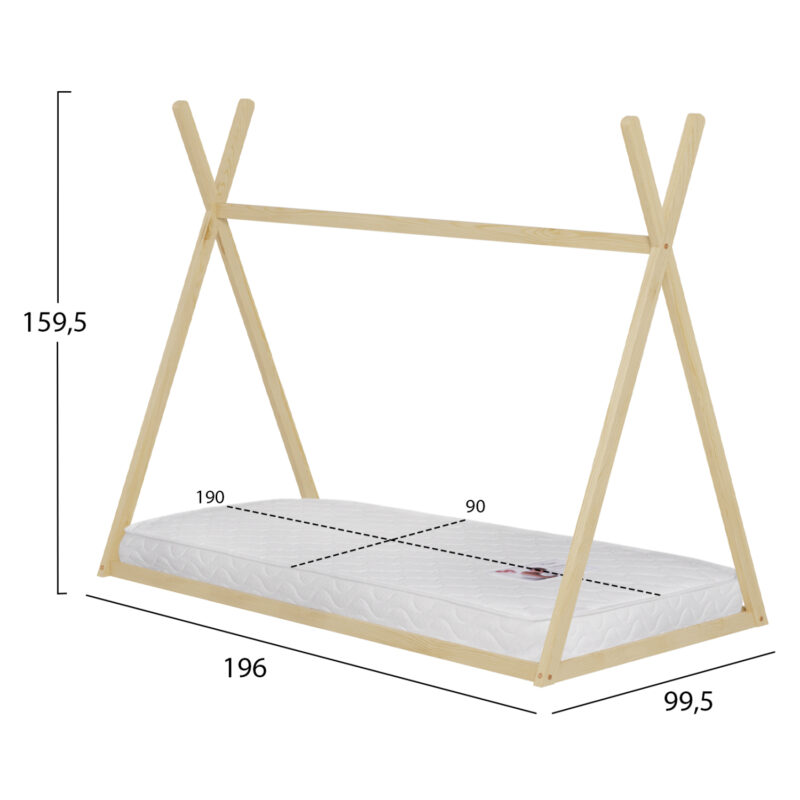 Легло, MUNK, Натурален, Чам, 90х190см.