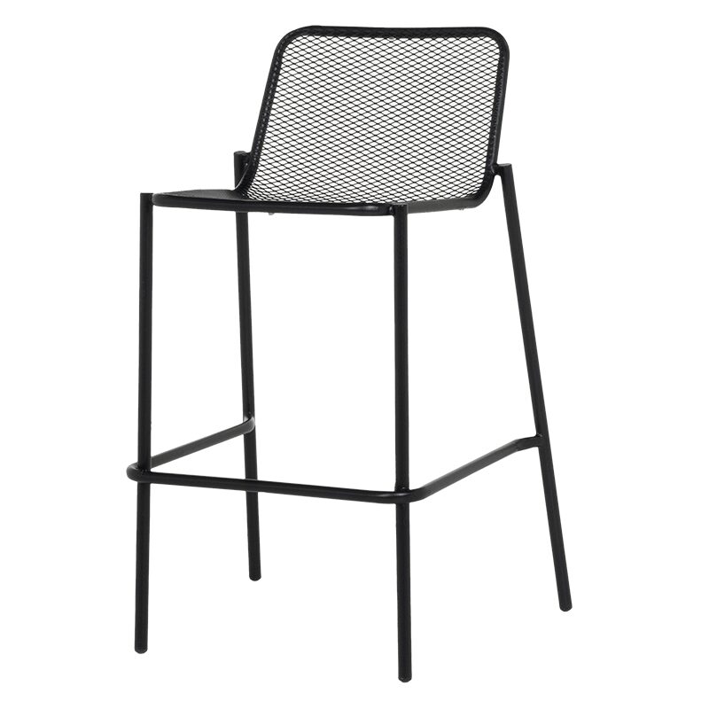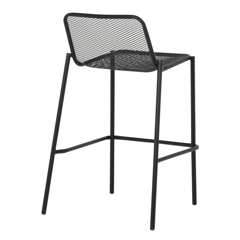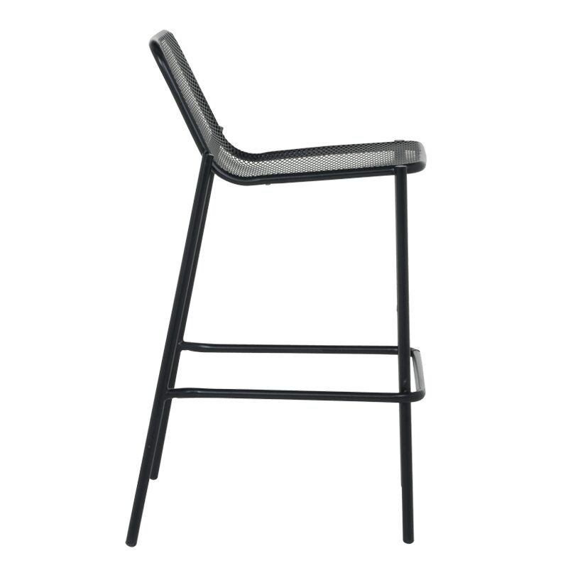Насладете се на комфорт и стил с кетъринг бар стол BAMA в черен цвят, идеален за всеки бар или тераса. Изработен от висококачествен метал с антикорозионна защита, този стол е устойчив на атмосферни влияния. Седалката и облегалката от метална мрежа гарантират проветривост и удобство, а възможността за стифиране спестява ценно пространство.