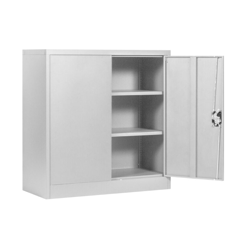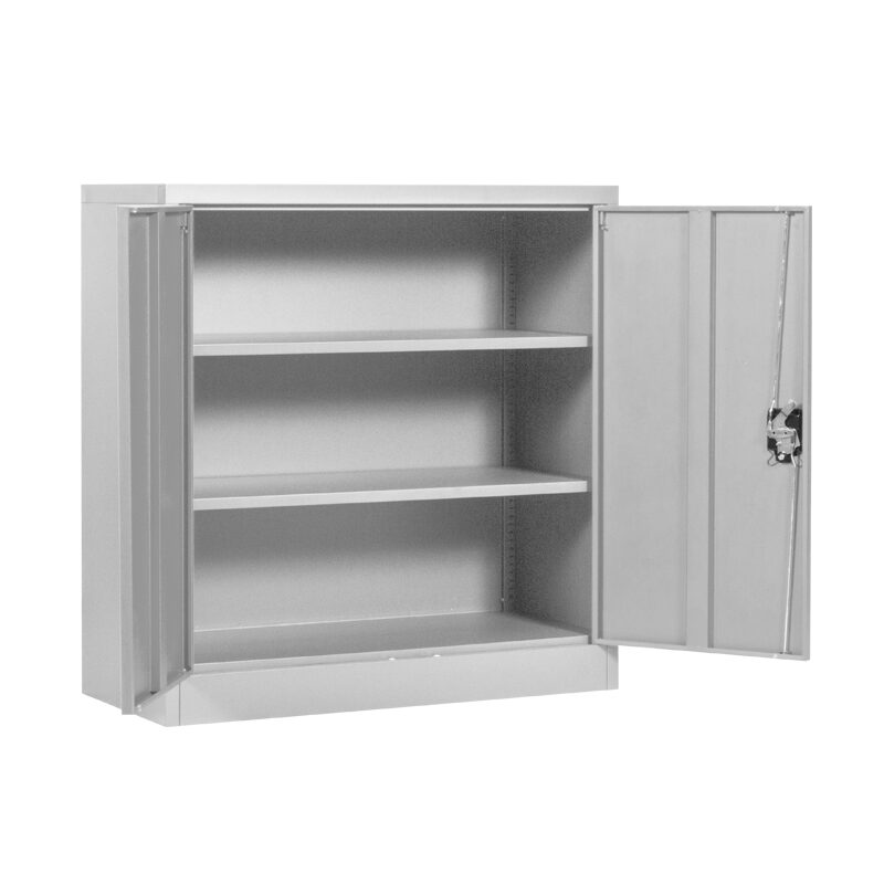 Металният шкаф CR-1239 E J е идеалното решение за сигурно съхранение на вашите документи. С регулируеми рафтове, всеки издържащ до 40 кг, този шкаф осигурява гъвкавост и издръжливост. Изработен от праховобоядисан метал, той съчетава здравина и стил. Открийте повече за размерите и характеристиките в секцията “Допълнителна информация”.