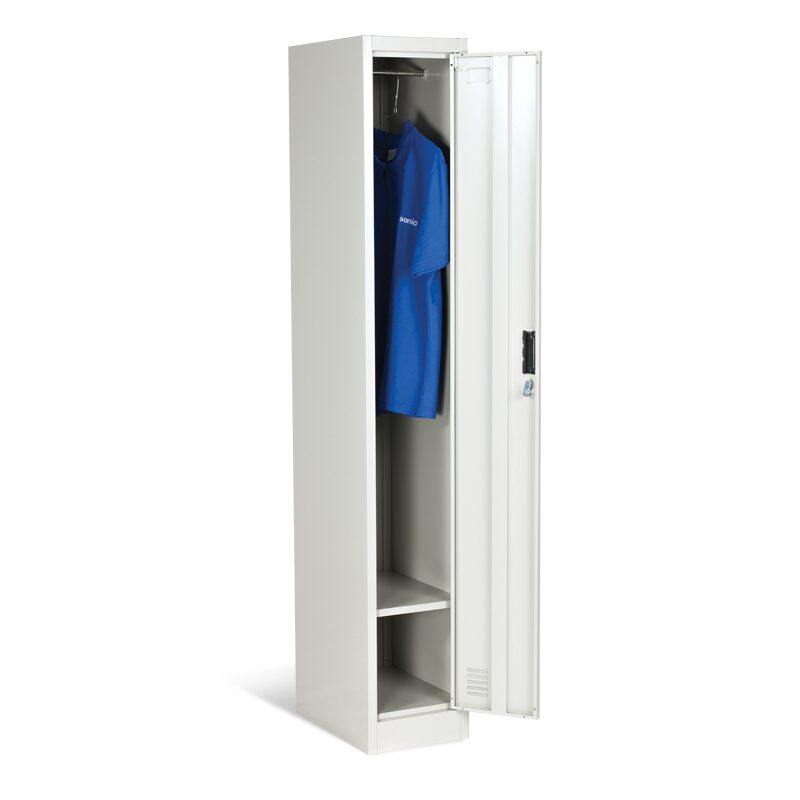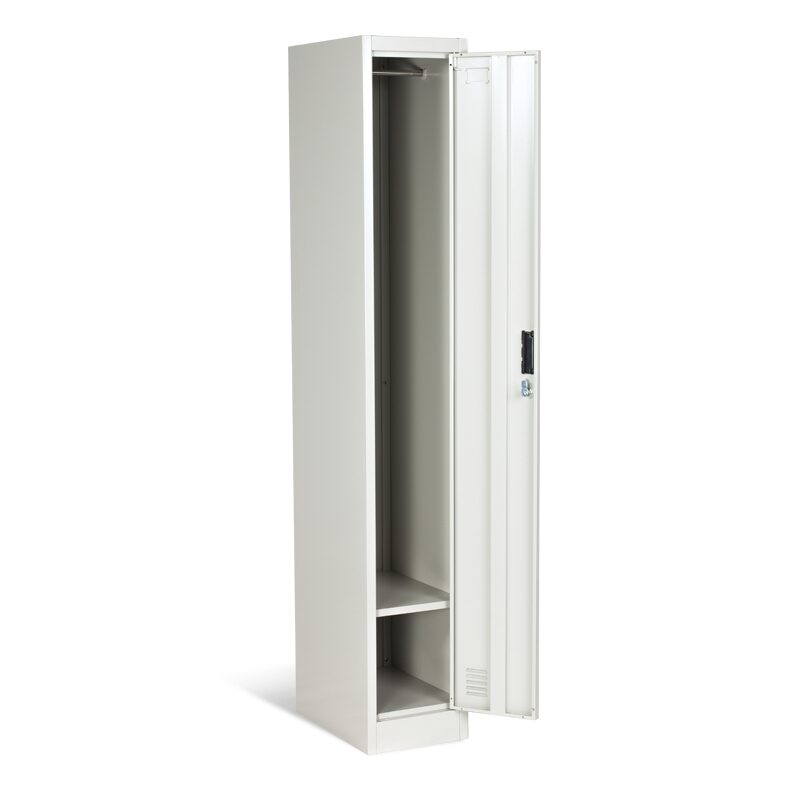Металният шкаф за съблекалня CR-1242-1 ЕL предлага сигурност и организация с едно заключващо се отделение, рафт и лост за закачалки. Изработен от висококачествен праховобоядисан метал, този шкаф е част от нашата гама метални мебели, включваща офис контейнери и шкафове за документи. Разгледайте пълните размери и характеристики в секцията “Допълнителна информация”.