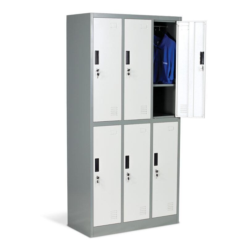Металният шкаф CR-1243 J LUX е идеалното решение за съблекални, осигурявайки сигурност и организация с шест заключващи се врати и рафтове. Изработен от висококачествен праховобоядисан метал, този шкаф е част от нашата линия метални мебели, включваща офис контейнери и гардероби. Разгледайте таблицата в “Допълнителна информация” за пълни размери и характеристики.