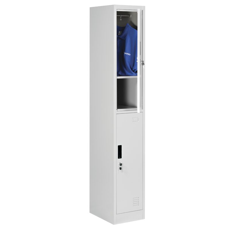 Метален шкаф CR-1257 К предлага сигурност и удобство с две отделения, всяко оборудвано с рафт и лост за закачалки. Изработен от висококачествен прахово боядисан метал, този гардероб е идеален за съхранение. С вентилационни отвори и заключващ механизъм, шкафът е перфектен за офис или домашна употреба. Открийте издръжливост и стил в колекцията ни от метални мебели.
