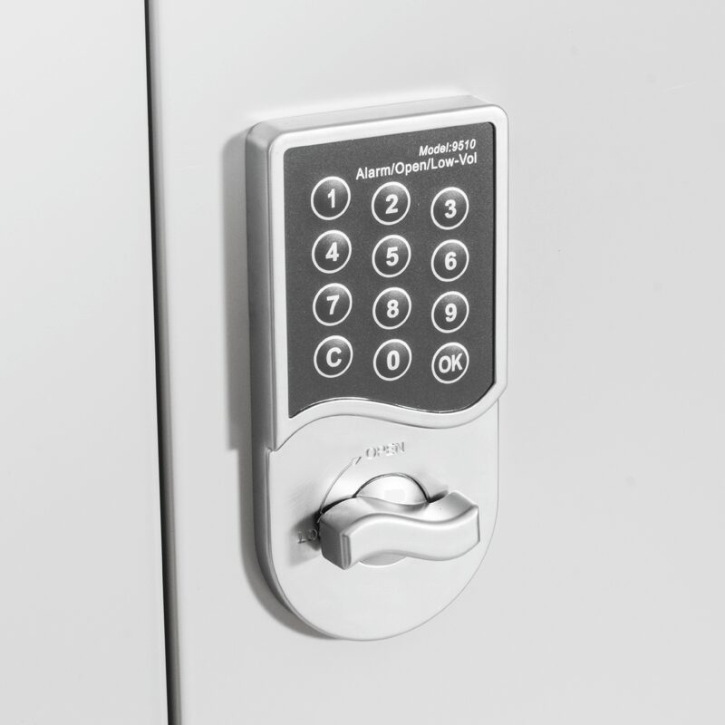 Металният шкаф CR-1282 E J е идеалното решение за сигурно съхранение на вашата документация, благодарение на здравата си стоманена конструкция и електронно заключване с парола. С плътни врати за дискретност и четири регулируеми рафта, този шкаф предлага гъвкавост и надеждност. Изработен от праховобоядисан метал, той съчетава качество и стил за вашия офис.