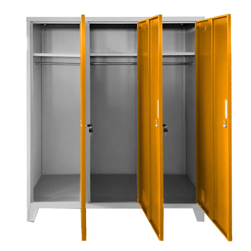 Металният шкаф CR-1604-3 JZ предлага изключителна сигурност и организация с трите си заключващи се врати и здрави рафтове, издържащи до 40 кг. Изработен от праховобоядисан метал, този шкаф е идеален за детски градини, благодарение на вентилационните отвори и удобни крака за лесно почистване. Насладете се на дълготрайно качество и практичност в едно.