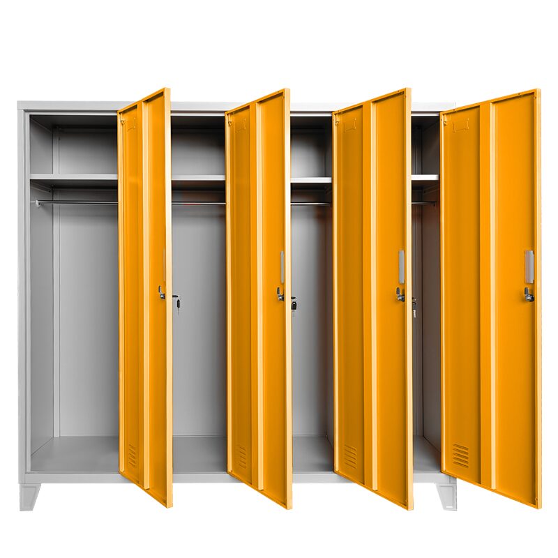 Металният шкаф CR-1604-4 JZ предлага сигурност и организация с четири заключващи се врати. Изработен от праховобоядисан метал, той е издръжлив и устойчив. Всеки отсек разполага с рафт с товароносимост до 40 кг, лост за закачалки и вентилационен отвор. Идеален за детски градини, шкафът е на крачета за лесно почистване. Подробности за размерите ще откриете в раздела ‘Допълнителна информация’.