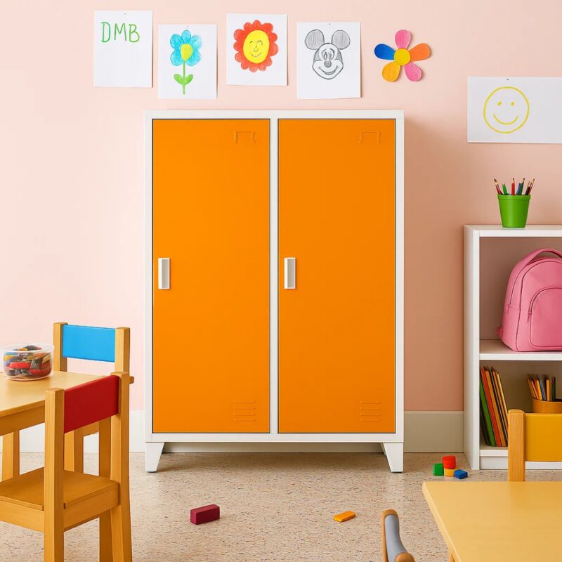 Металният шкаф CR-1605-2 JZ предлага практично и стилно решение за съхранение с две здрави врати и магнитна система за затваряне. Със здрава конструкция от праховобоядисан метал и рафт с товароносимост до 40 кг, този шкаф е идеален за детски градини. Вградените вентилационни отвори и удобните крака улесняват почистването и осигуряват добра циркулация на въздуха.
