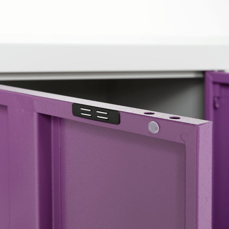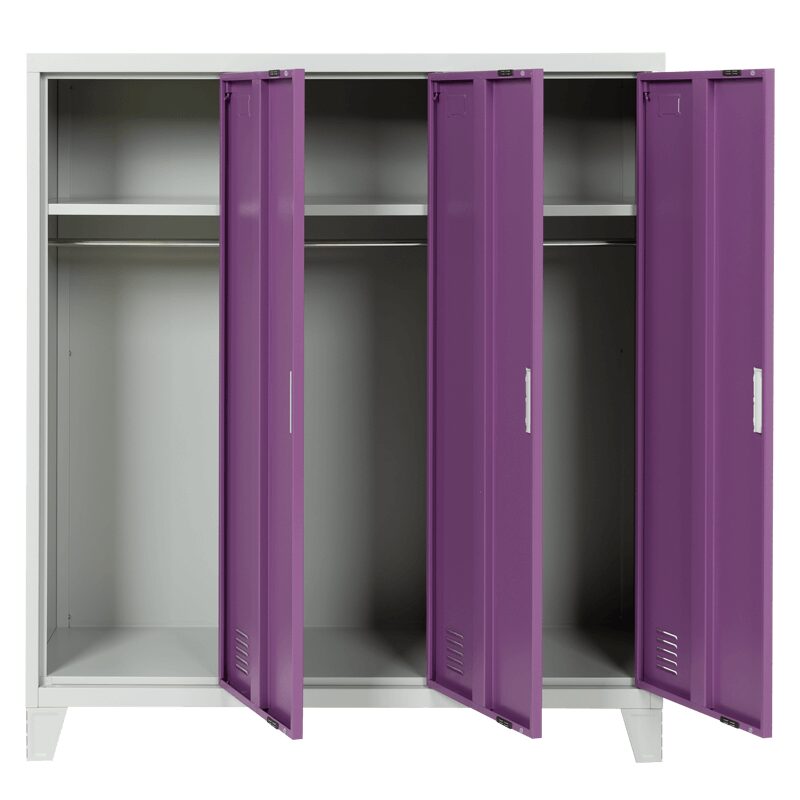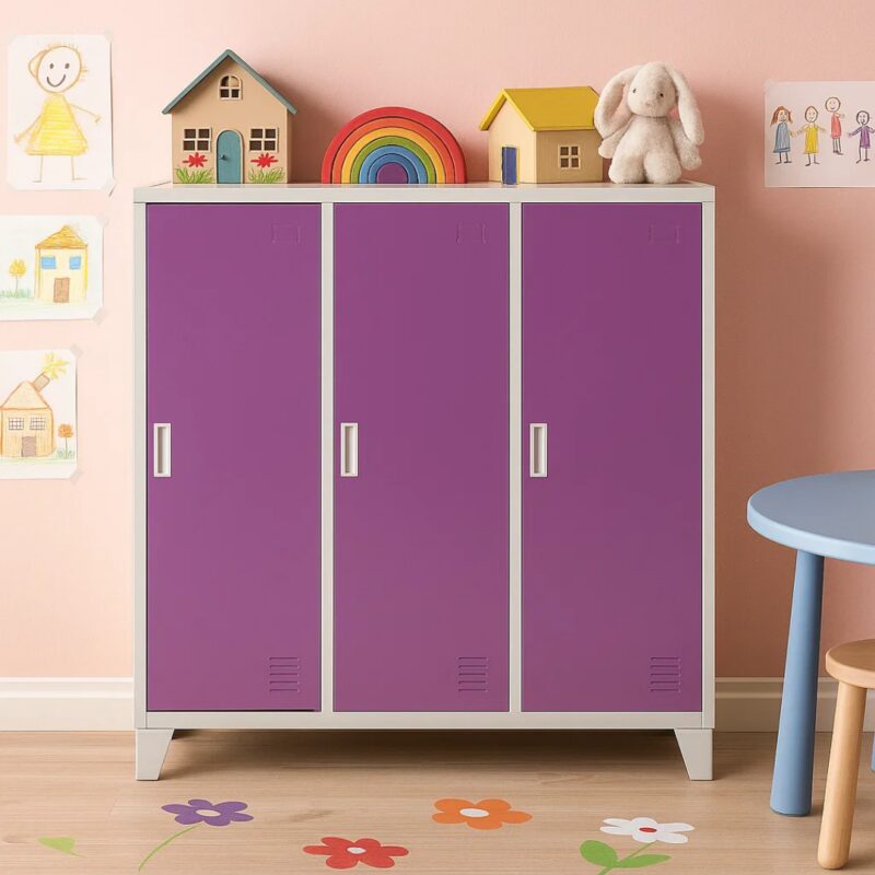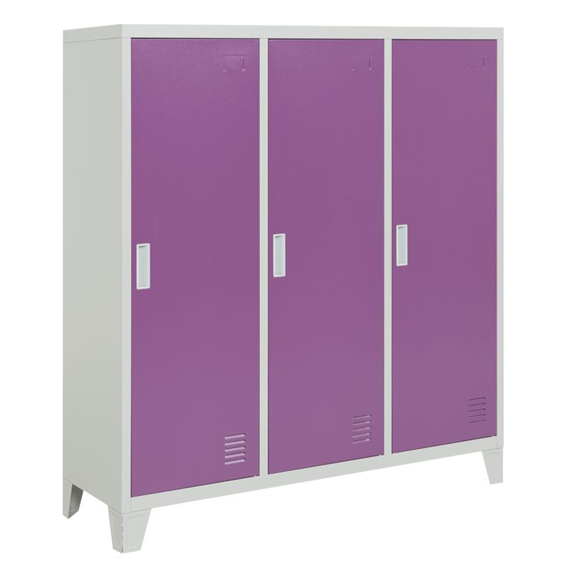 Тройният метален гардероб CR-1605-3 JZ предлага оптимално съхранение с три отделения, всяко снабдено с рафт (до 40 кг), лост за закачалки и вентилационен отвор. Изработен от праховобоядисан метал с висококачествено грапаво-шагрен покритие, този шкаф е идеален за детски градини. Лесното почистване е гарантирано благодарение на 10-сантиметровите крака.