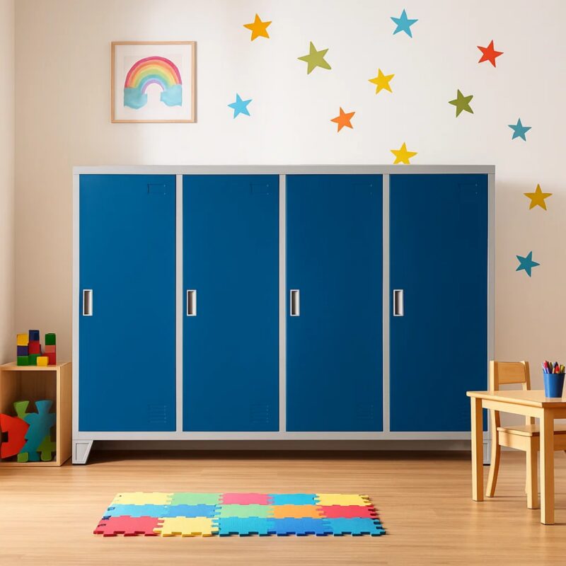 Металният шкаф CR-1605-4 JZ е идеалното решение за организиране на пространството в детските градини. С четири здрави врати и магнитна система за затваряне, този шкаф предлага надеждност и удобство. Изработен от висококачествен праховобоядисан метал, той разполага с рафтове с товароносимост до 40 кг и вентилационни отвори за оптимална циркулация на въздуха. Лесен за почистване, благодарение на стабилните си крака, този модел е създаден да издържи на ежедневната употреба.