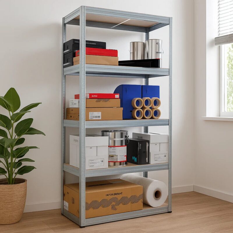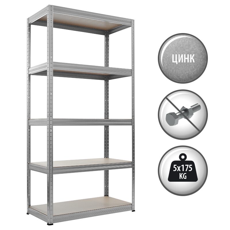 Организирайте работното си пространство или гараж с металния стелаж STAR, който предлага универсално решение за съхранение. С пет регулируеми МДФ рафта, всеки способен да издържи до 175 кг, този стелаж е изработен от висококачествен галванизиран метал. Лесният безболтов монтаж осигурява бърза адаптация към вашите нужди. Подробни размери и характеристики ще намерите в секцията “Допълнителна информация”.
