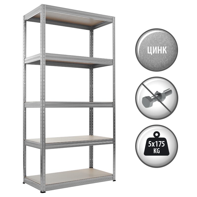 Метален стелаж STAR 180х90х35 см, до 175 кг на рафт – цинк