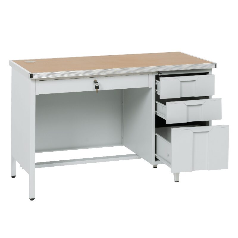 Открийте идеалното решение за вашия сервиз с металното бюро CR‑1318 L. Създадено за интензивна работа, това бюро предлага стабилност с прахово боядисан метал и здрав плот от ПДЧ с алуминиев кант. С 4 чекмеджета, кабелни отвори и заключваща система, организирайте инструментите си с лекота. Подробности за размерите и характеристиките ще намерите в раздела „Допълнителна информация“.