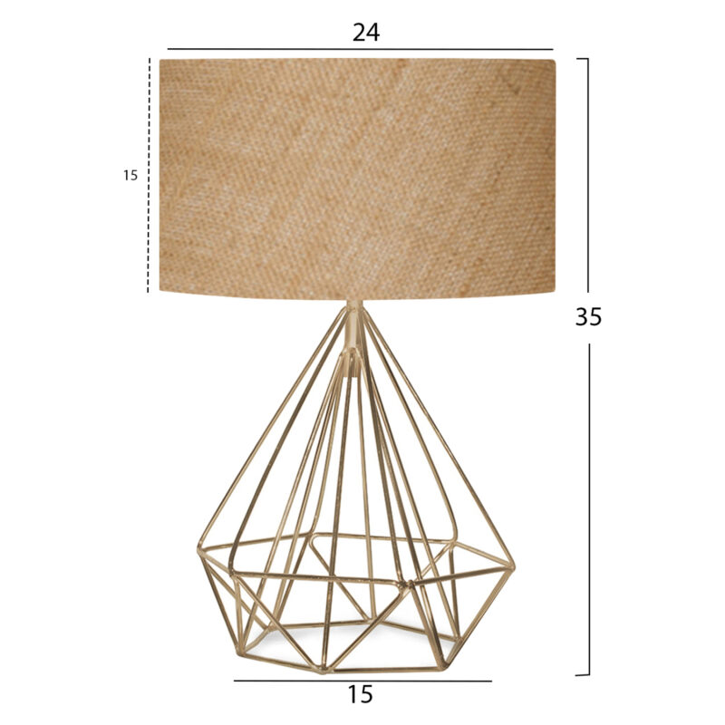 Златна метална мрежа във форма на полигонална пирамида и цилиндричен абажур в пясъчно бежово