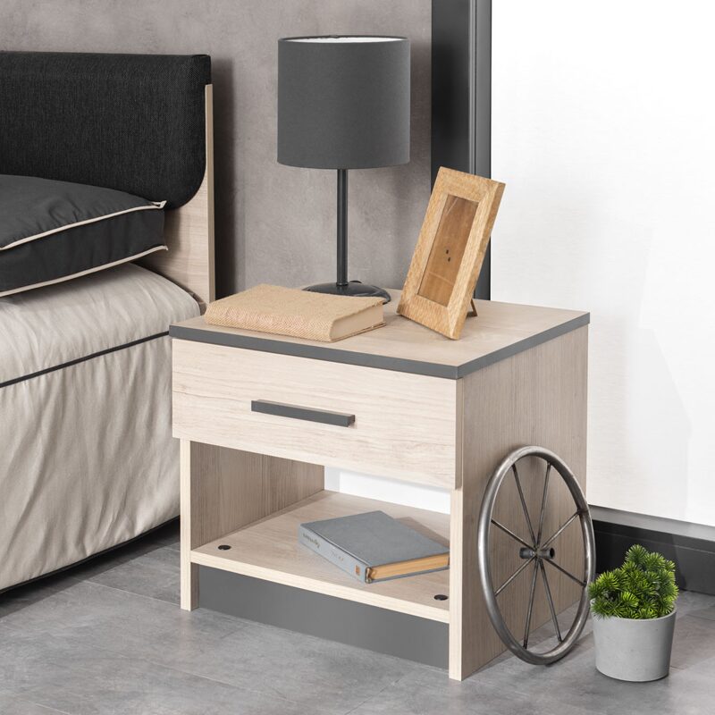 Нощното шкафче TORINO предлага съвременен дизайн и практично съхранение, идеално за детската стая. Изработено от висококачествено ПДЧ с дебелина 18 мм, то осигурява дълготрайна издръжливост. Чекмеджето с телескопични водачи и плавно затваряне издържа до 25 кг, гарантирайки удобство и безопасност. Открийте повече детайли в раздела „Допълнителна информация“.