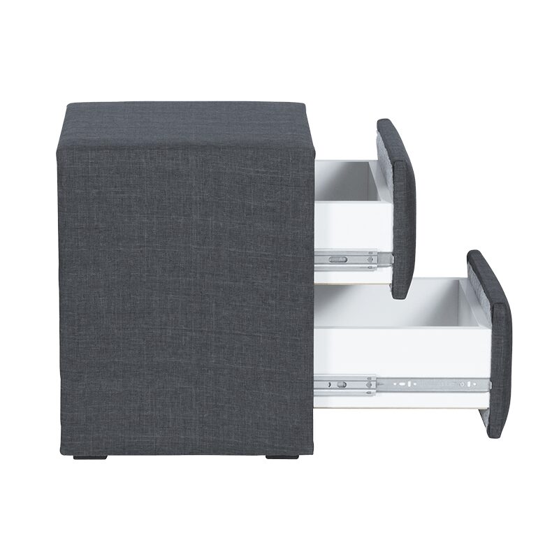 Нощното шкафче COTTON е перфектното решение за вашата спалня, осигурявайки практичност и стил с двете си просторни чекмеджета. Изработено от висококачествена дамаска и ПДЧ, това шкафче предлага издръжливост и елегантност в едно. Завършете визията на спалния комплект COTTON с този функционален и здрав аксесоар. Разгледайте таблицата в “Допълнителна информация” за детайлни размери и характеристики.