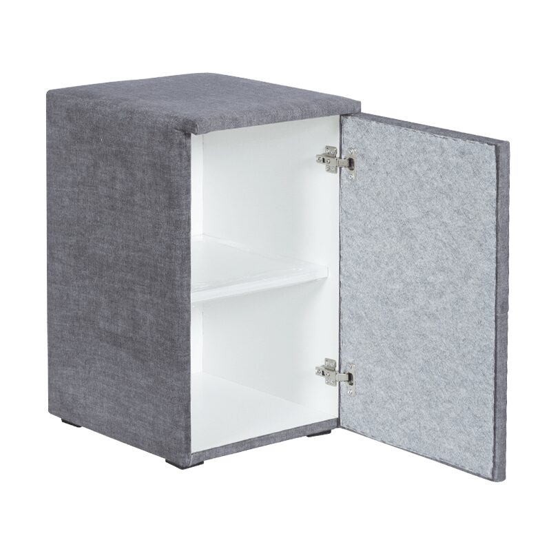 Нощното шкафче PUZZLE е идеалният избор за модерната спалня, съчетавайки стил и функционалност. Изработено от висококачествено ПДЧ с дебелина 18 мм и облечено в нежна дамаска, това шкафче предлага уют и изтънченост. Вътрешният рафт осигурява практично съхранение, а съчетанието със спалня и пейка от серията PUZZLE завършва интериора.