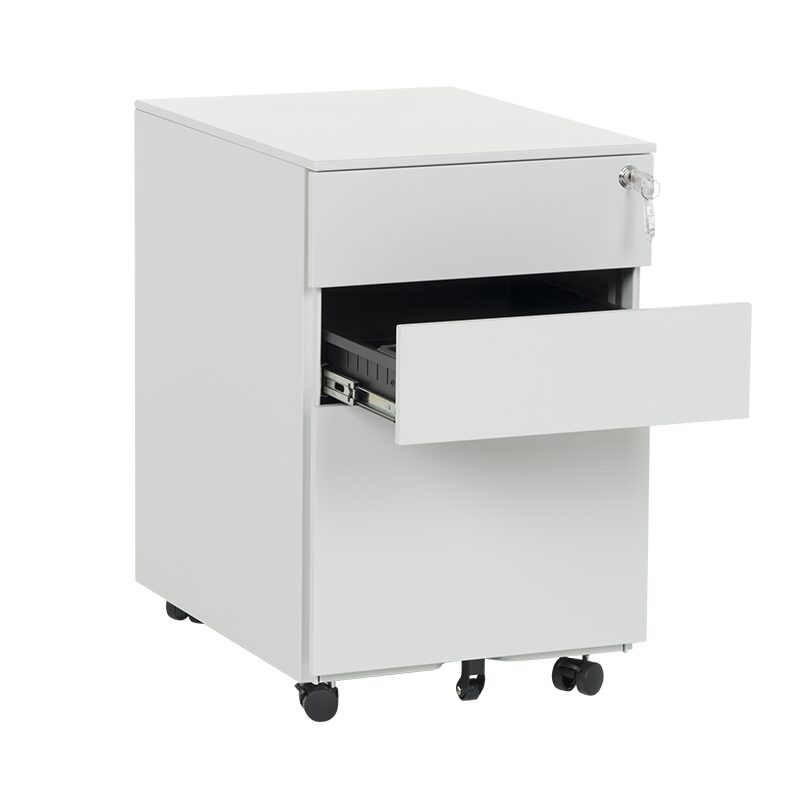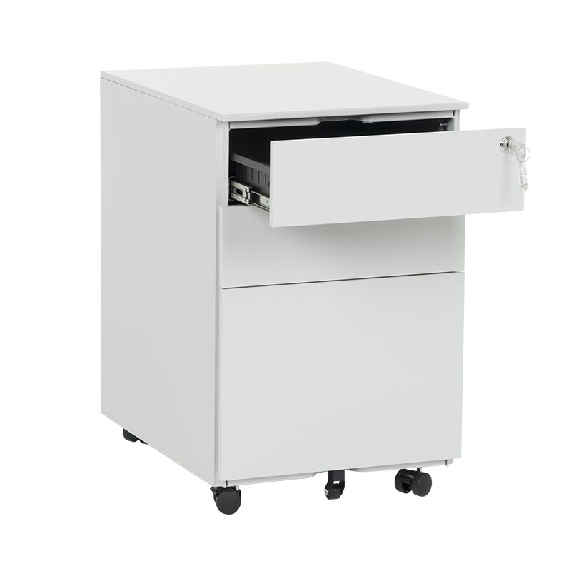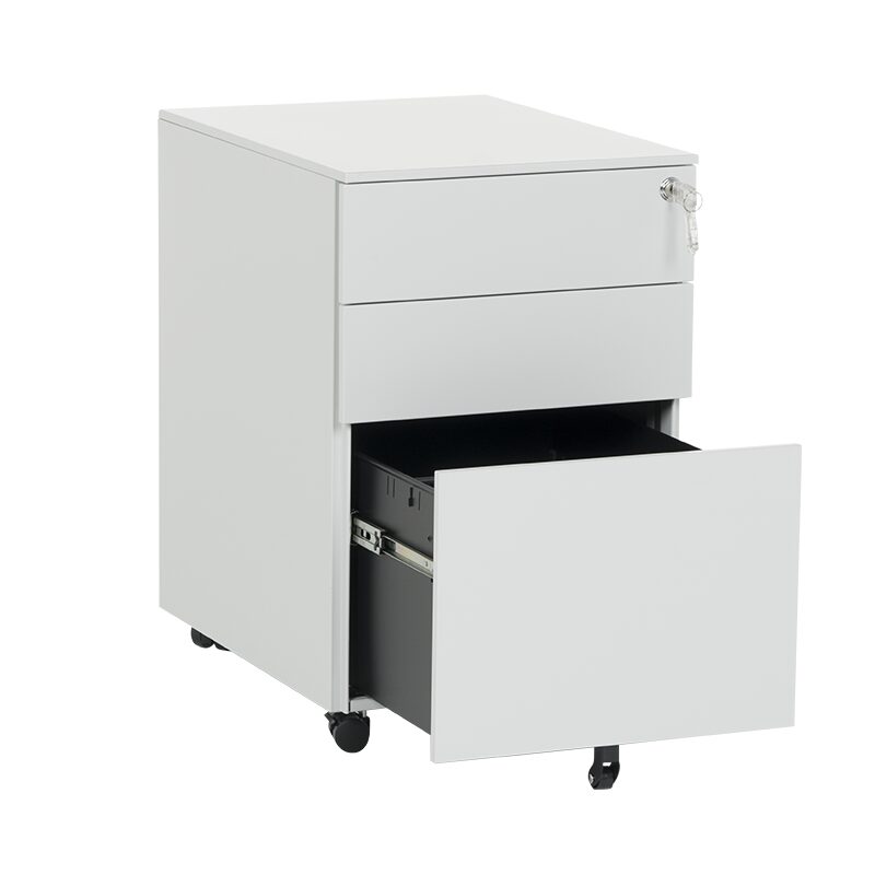 Практичният офис контейнер CR-1806 K е идеалното решение за организиране на вашите документи с неговите три чекмеджета и централно заключване. Изработен от висококачествен праховобоядисан метал, този контейнер предлага издръжливост и стил. Лесно подвижен благодарение на вградените колела, той пристига напълно сглобен, готов за употреба. Разгледайте “Допълнителна информация” за размери и детайли.