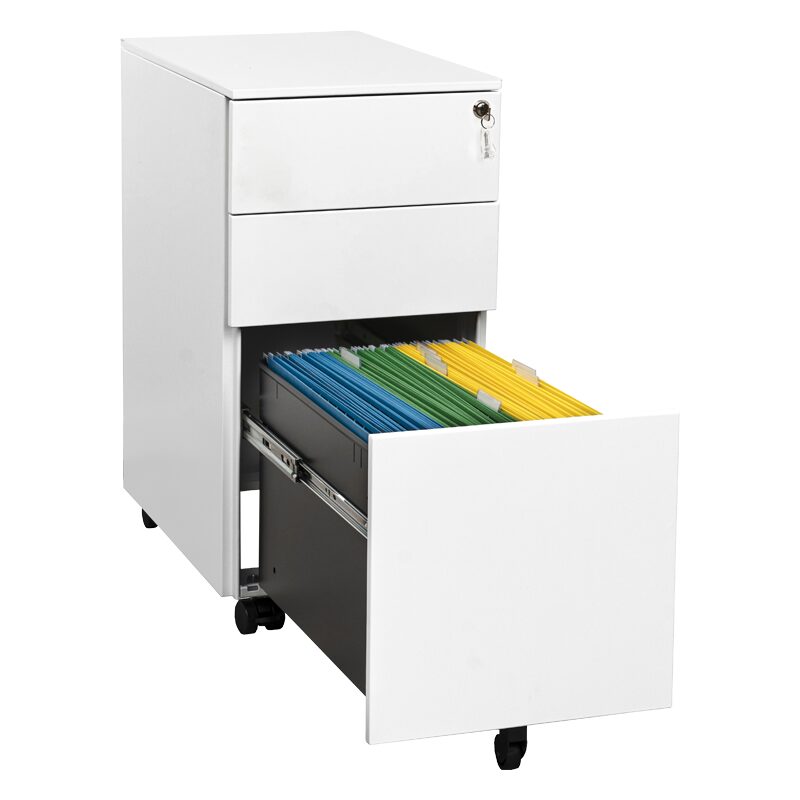 Офис контейнерът CR-1815 ZH осигурява сигурност и функционалност с централно заключване и три чекмеджета, включително специално за висящи папки. Изработен от праховобоядисан метал, той е здрав и стилен. Компактният му дизайн и колелца го правят идеален за малки пространства. Получавате го сглобен, готов за употреба. Перфектен избор за организиране на офис документи и аксесоари.