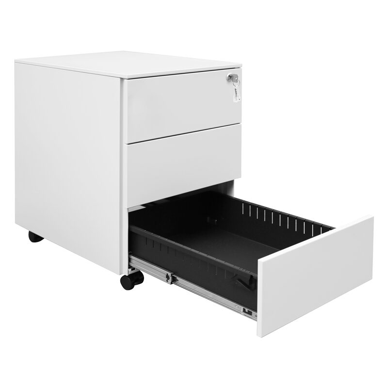 Офис контейнерът CR-1817 ZH предлага удобно и сигурно съхранение с трите си чекмеджета, включително просторното долно за документи. Изработен от висококачествен праховобоядисан метал, той е издръжлив и стилен. С централното заключване и подвижните колелца, този модел е идеален за организиране на офис документи и лични вещи. Предлага се сглобен, готов за употреба.