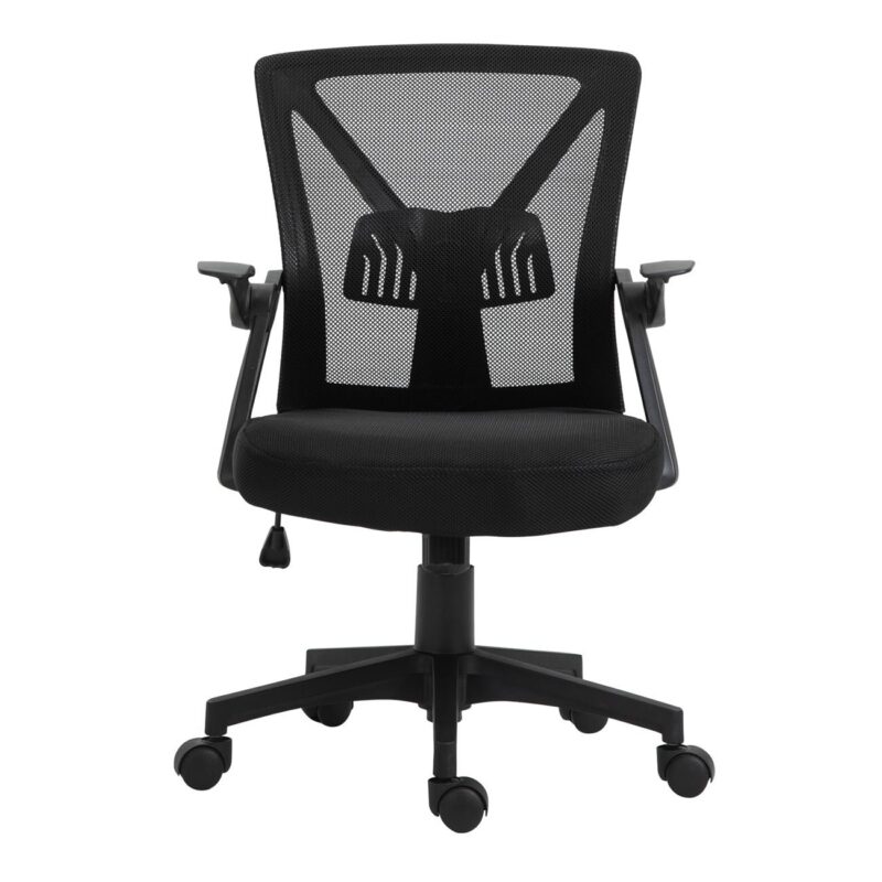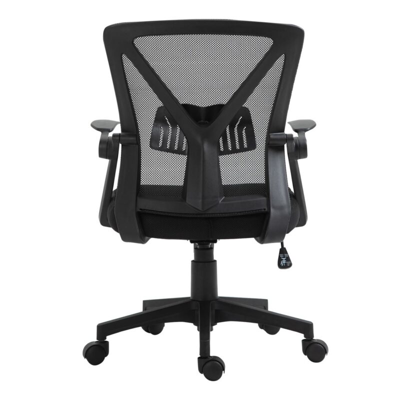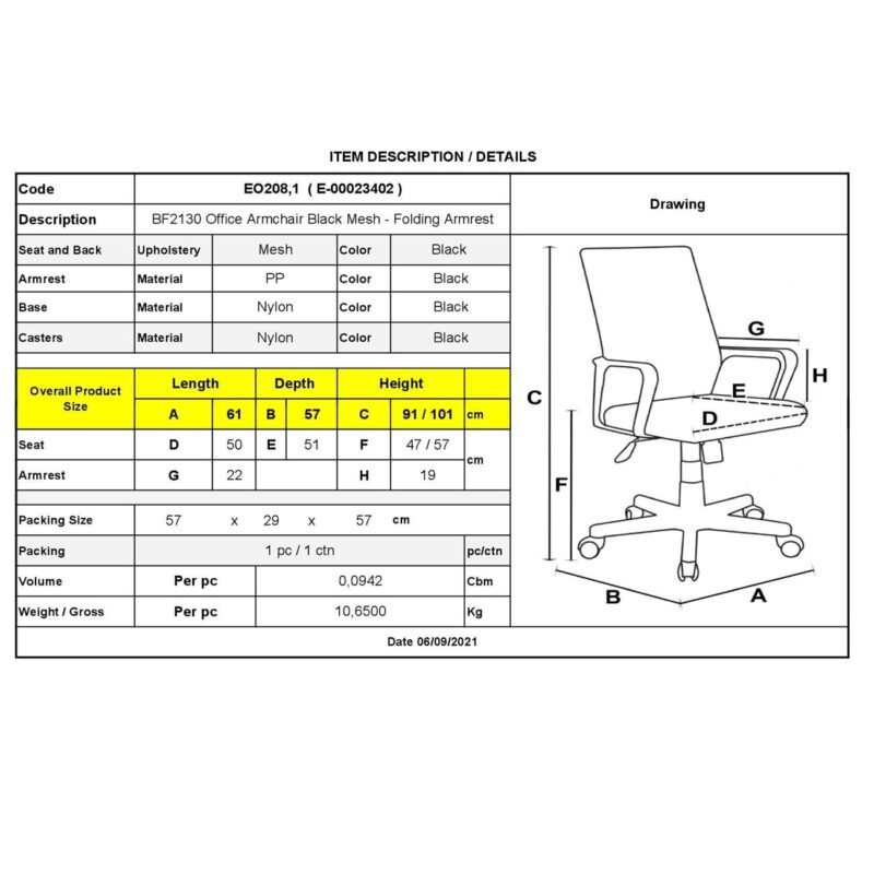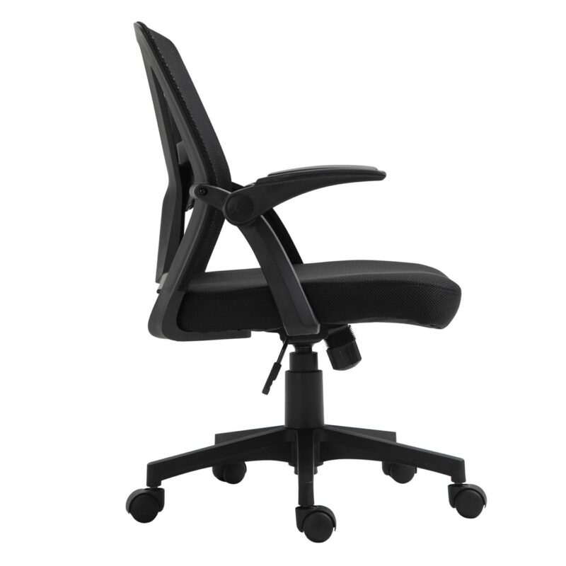 Основата и колелата са от черен найлон, подлакътниците от черен PP, тапицерията е от черна мрежа