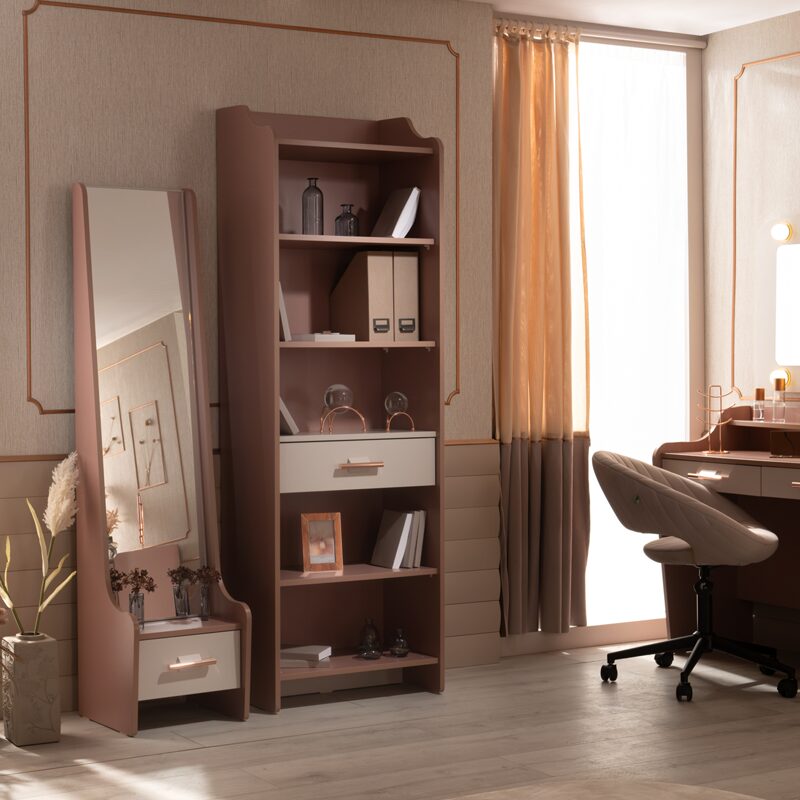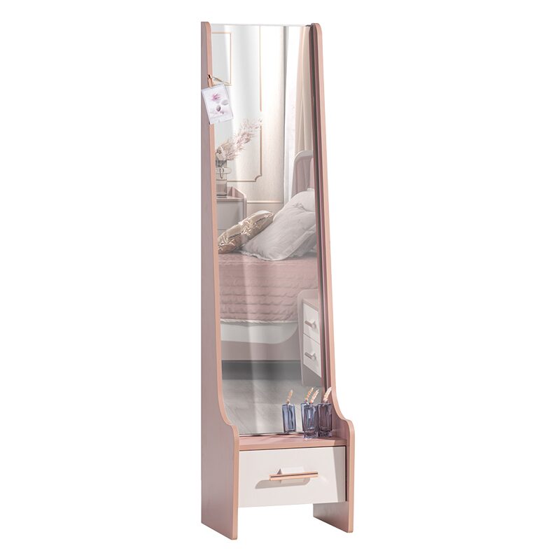 Огледалото ESTELLA е идеалното съчетание на стил и практичност за детската или тийнейджърска стая. С елегантен дизайн и вградено чекмедже, то предлага удобно съхранение на аксесоари и лични вещи. Изработено от висококачествено ПДЧ, огледалото гарантира дълготрайна и безопасна употреба. Стилната дръжка в розово злато добавя фин акцент, който допълва всеки интериор.