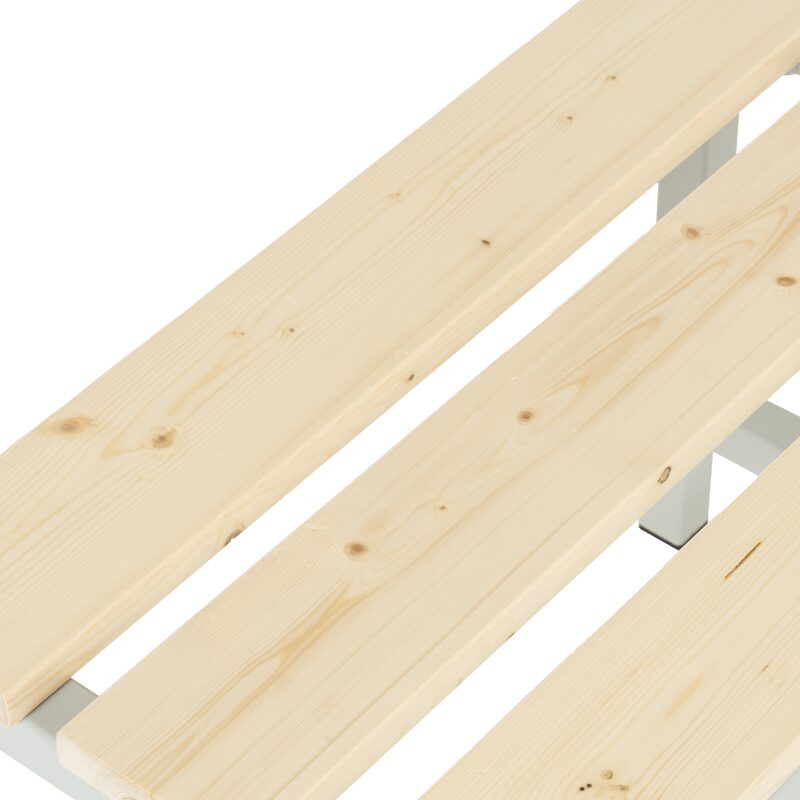 Тази стилна и издръжлива пейка за съблекалня CR-1050 J осигурява комфорт и естетика във всяко професионално пространство. Изработена от здрав праховобоядисан метал с антикорозионно покритие и висококачествена импрегнирана борова дървесина, тя е идеална за фитнеси, спортни зали и СПА центрове. Насладете се на надеждност и елегантност с нашите мебели за съблекални.