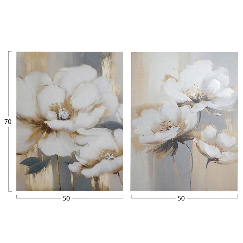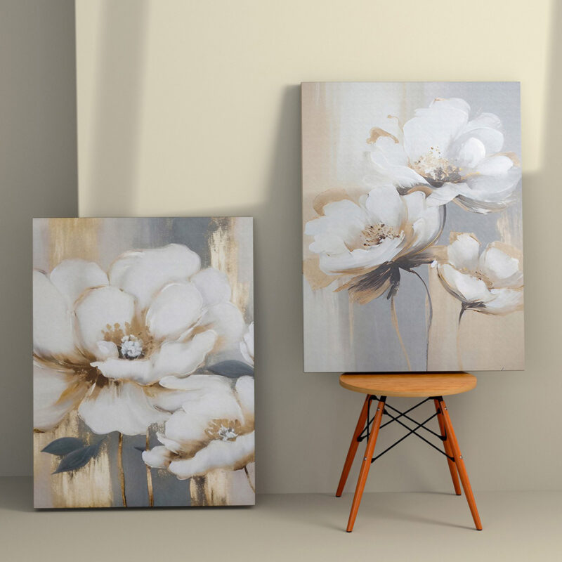 Цветни картини с цветя върху принтирано платно в дървена рамка