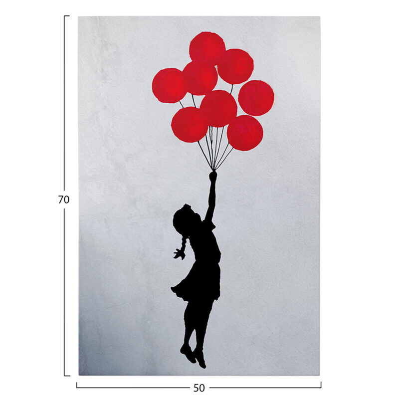 Изображение на момиче с червени балони, отпечатано на дигитално платно (50% памук-50% полиестер) в дървена рамка.