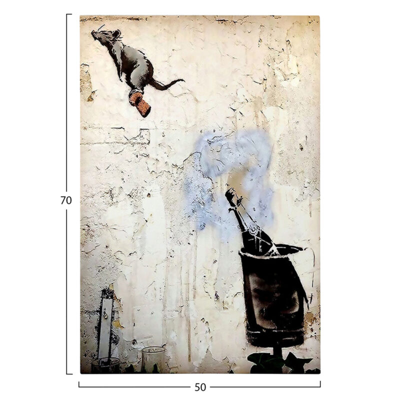 Изобразява отваряне на шампанско на дигитално принтиран платно