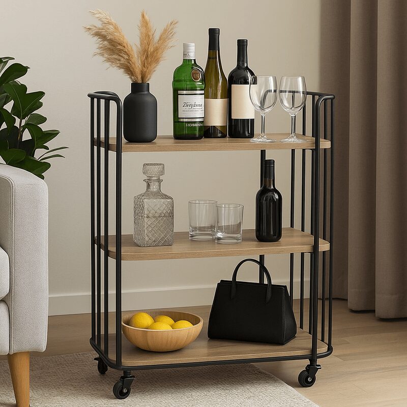 Помощната количка VARBERG е идеалното решение за вашия дом, съчетавайки стил и функционалност в индустриален дизайн. Изработена от здрав праховобоядисан метал и висококачествен МДФ, тя предлага стабилност и дълготрайност. С удобните колелца със стопери, преместването е лесно и безопасно. Открийте повече за размерите и характеристиките в секцията ‘Допълнителна информация’.