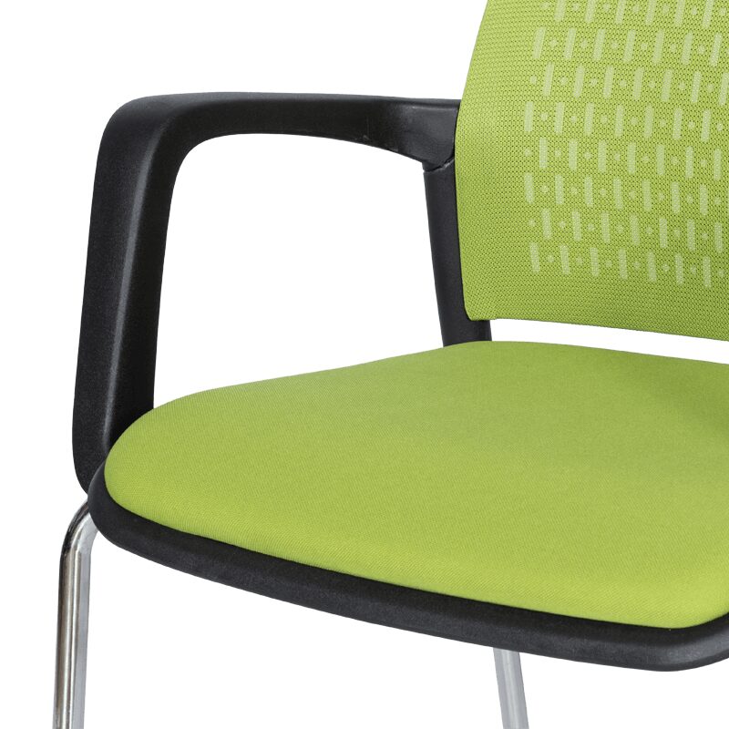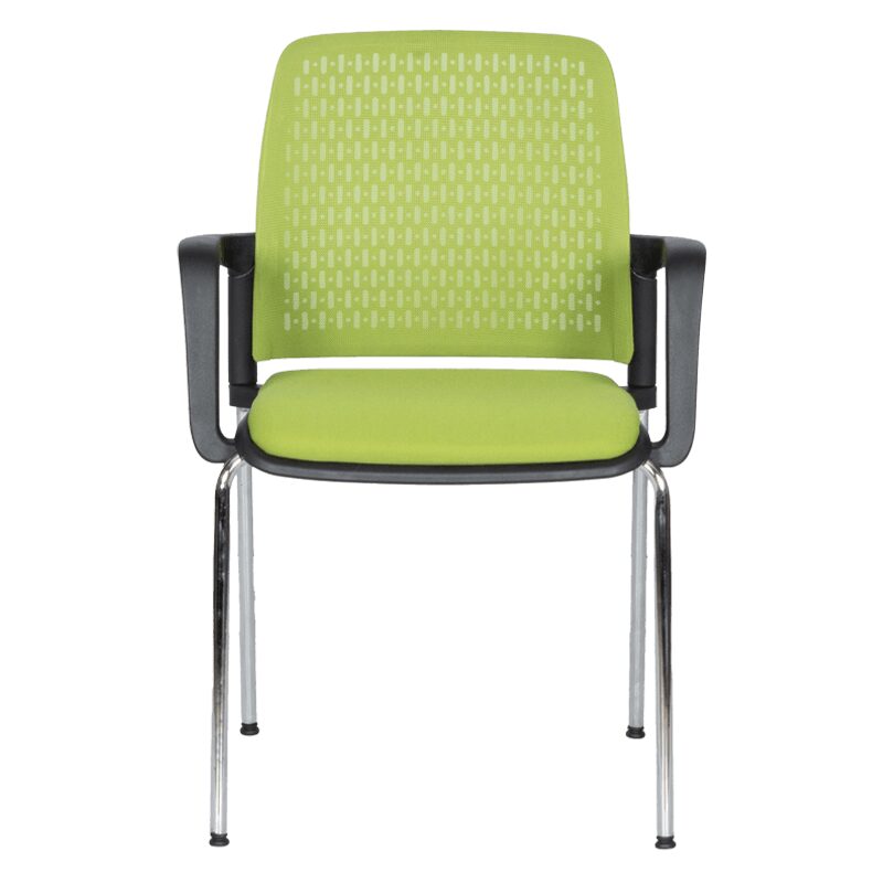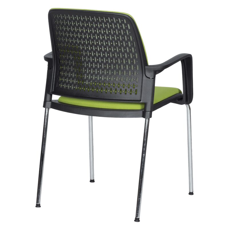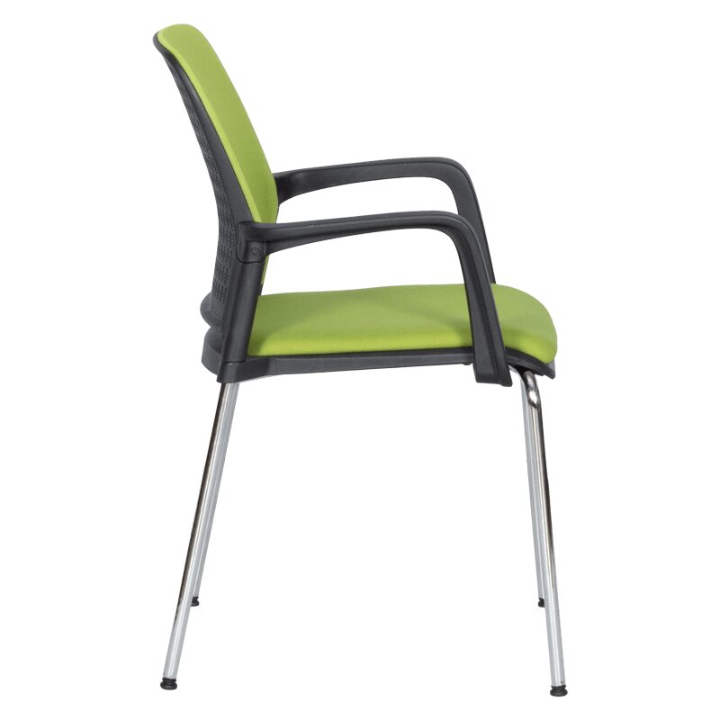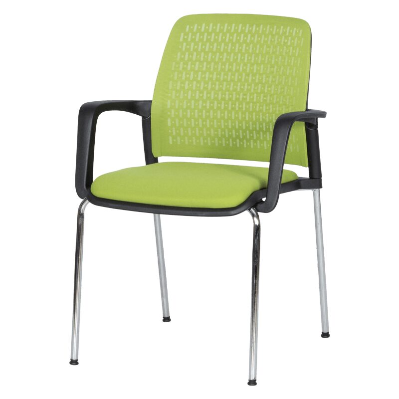 Посетителският стол 1138 CH е идеалното решение за вашия офис, съчетавайки елегантност и издръжливост. С хромирана метална основа и тапицирана седалка, този стол предлага комфорт и стил, докато вентилираната облегалка от полипропилен осигурява дълготрайна подкрепа. Фиксираните подлакътници и възможността за стифиране правят този стол практичен избор за всяко работно пространство.