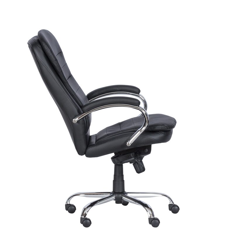 Насладете се на комфорт и стил с президентския офис стол 6113 M. Този елегантен стол с хромирана основа и заоблени форми предлага регулируем люлеещ механизъм и вграден газов амортисьор за перфектно коригиране на височината. Изработен от висококачествена еко кожа, той осигурява удобство и дълготрайност. Разгледайте допълнителната информация за точни размери и характеристики.
