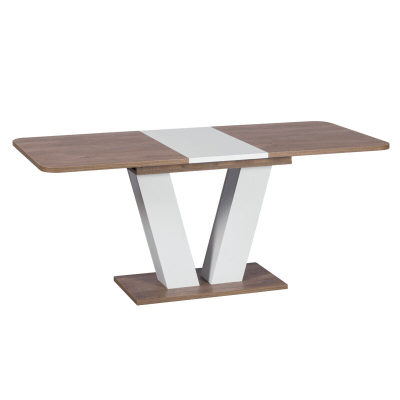 Разтегателната трапезна маса ALARA е идеалният избор за съвременната кухня, съчетавайки стил и функционалност. С модерния си дизайн и V-образна основа, тази маса предлага стандартна височина от 75 см и плот от ПДЧ с дебелина 25 мм. Лесно разширете плота от 136 см до 176 см, за да посрещнете повече гости. Вижте таблицата в “Допълнителна информация” за детайли.