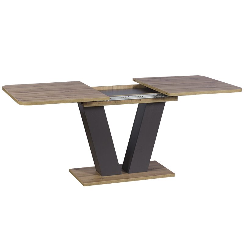 Разтегателната трапезна маса ALARA е перфектното решение за съвременната кухня, съчетавайки стил и функционалност. С V-образна основа и здрав плот от ПДЧ, тя предлага стабилност и елегантност. Размерите ѝ се разширяват от 136 см на 176 см, осигурявайки допълнително пространство за специални поводи. Открийте повече за този модерен мебелен акцент в секцията “Допълнителна информация”.