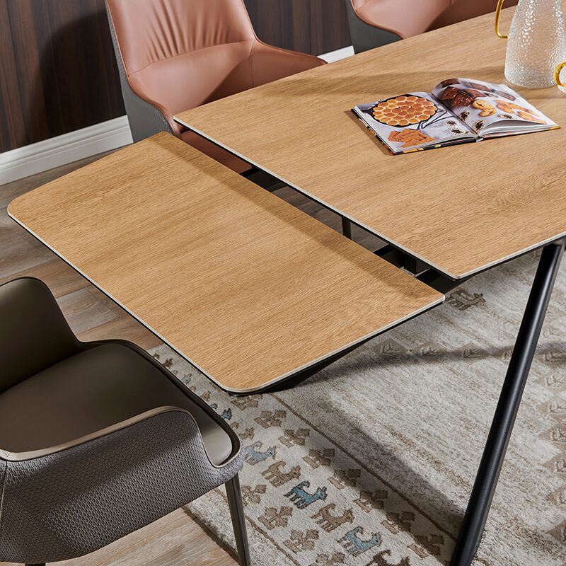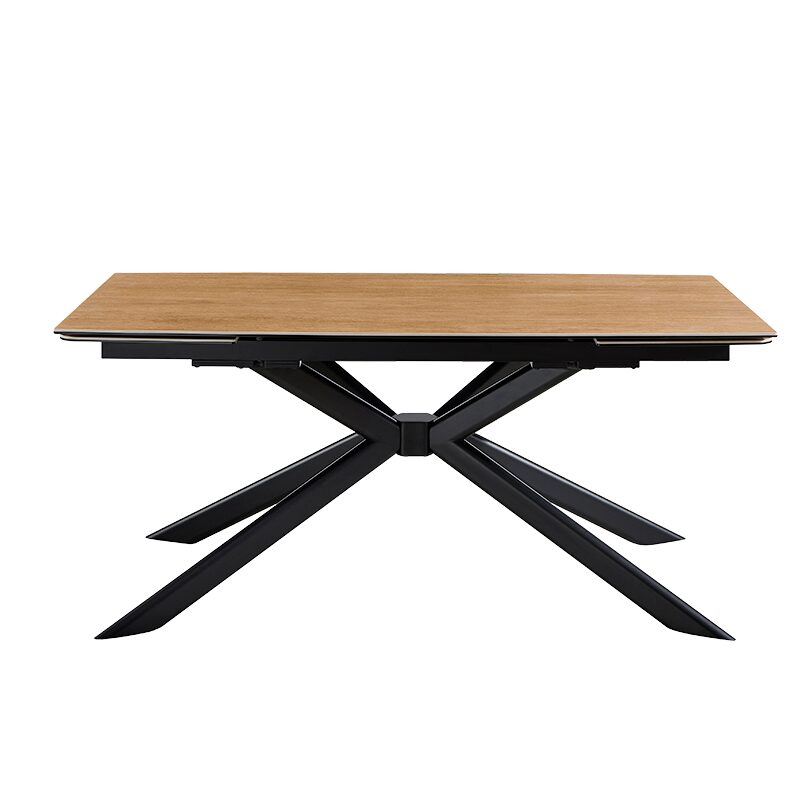 Разтегателната трапезна маса ANACO е идеалното решение за вашата модерна трапезария, съчетавайки стил и функционалност. Изработена от висококачествени материали като закалено стъкло и керамика с дървесен цвят, тя предлага издръжливост и естетика. Здравата метална основа гарантира стабилност, а разтегателният механизъм увеличава дължината от 160 см до 240 см, осигурявайки пространство за всякакви поводи.